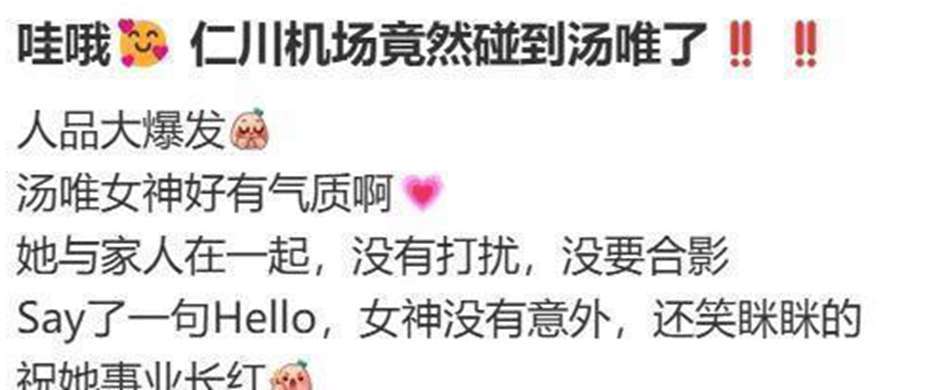 嘿,你们有没有发现,娱乐圈里有些事儿啊,那真是一天一个样儿。就说汤唯和金泰勇这对夫妇吧,3月31号的时候,在北京机场被网友偶遇了一家三口的温馨画面,这一下子可就把之前的离婚传闻给打破了。你说这娱乐圈的消息啊,有时候真的是像雾像雨又像风,让人捉摸不透。不过这也正常,毕竟在这个充满聚光灯和八卦的圈子里,啥事儿都可能发生,啥消息都可能传得有鼻子有眼的。